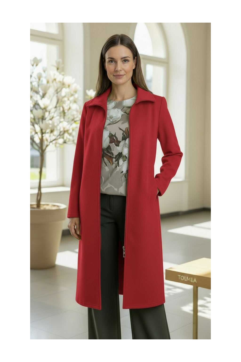 Elegantní kabát Mirage v délce pod kolena zaujme svým moderním střihem i čistou linií. Díky komfortnímu materiálu s podílem vlny krásně drží tvar, přitom je příjemně měkký a lehký. Praktický zip, pásek v pase a originální kapsa dodávají kabátu nadčasový charakter.