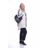 Teplákové kabátky jsou poslední dobou hodně oblíbené, ale není kabátek jako kabátek. Náš teplákový kabátek má střih a tvar a perfektně sedí a rozhodně v něm nebudete vypadat jako v pytli. Kabátek je zapínaný na zip, zdobný našitými stuhami na zadním díle a na rukávech. V bočních švech jsou všité praktické kapsy. Zadní díl je mírně prodloužený  do oblouku.