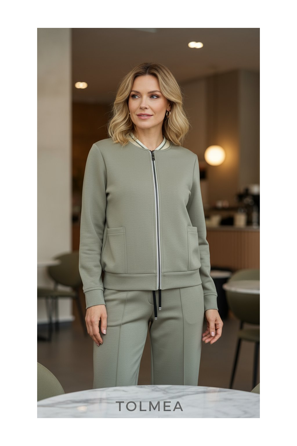 - Designové prvky: rovný střih, otevřené zapínání bez zipu, praktické kapsy a lemovaný výstřih s kontrastním proužkem, který dodává sportovně-elegantní vzhled.