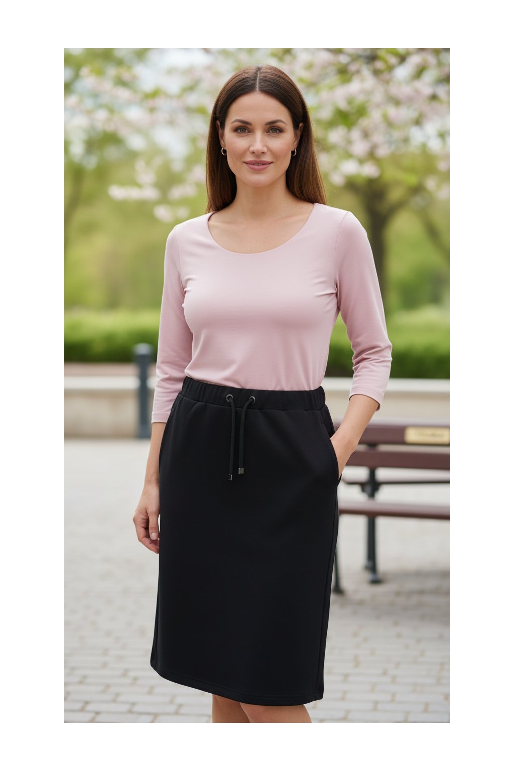 Sukně Magda je symbolem pohodlí a ženské elegance v moderním pojetí. Její hladká silueta lichotí postavě, zatímco pružný pas se šňůrkou zaručuje komfort při každém pohybu. Ideální volba pro ženy, které hledají elegantní kousek s ležérním dotekem.