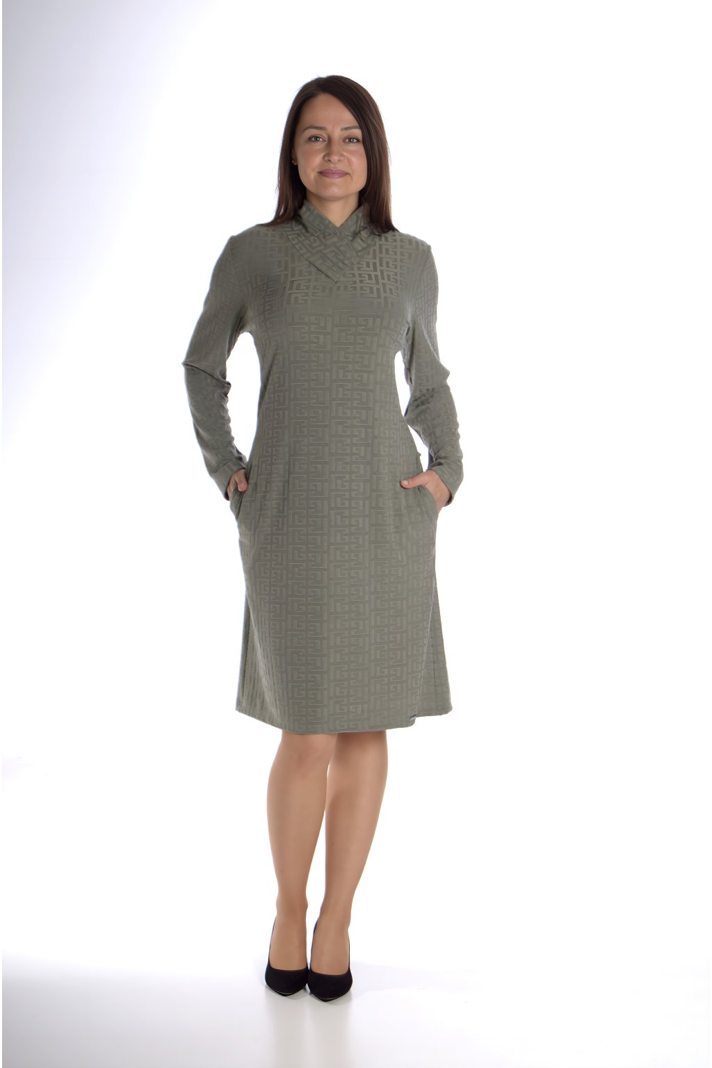Styl, který se nosí s lehkostí – šaty Filipa jsou pohodlné, lichotivé a plné jemné elegance. Plastický vzor v úpletu dodává modelu strukturu a originalitu, zatímco rafinovaný stojáček krásně rámuje dekolt.