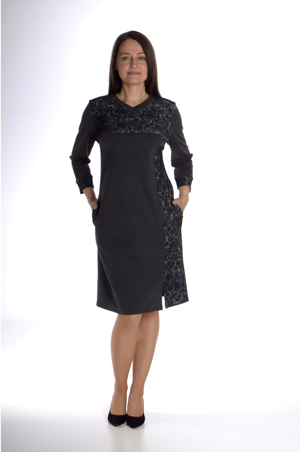 - Vzorovaná vsadka v horní části a na rukávech – elegantní a originální