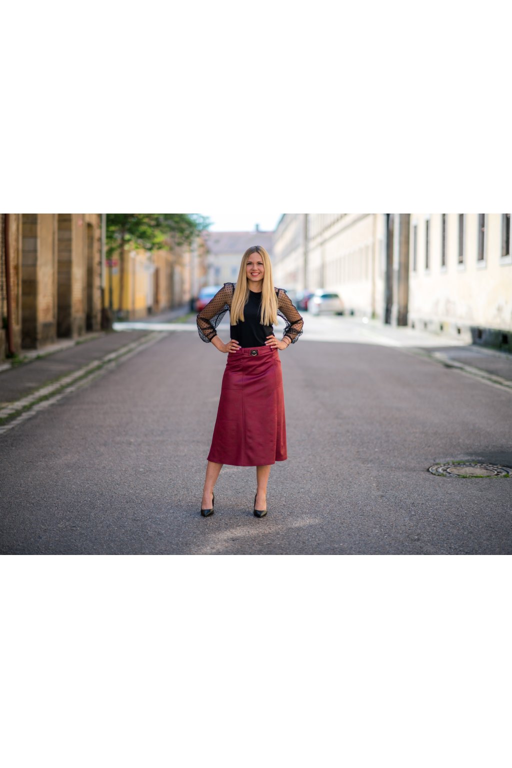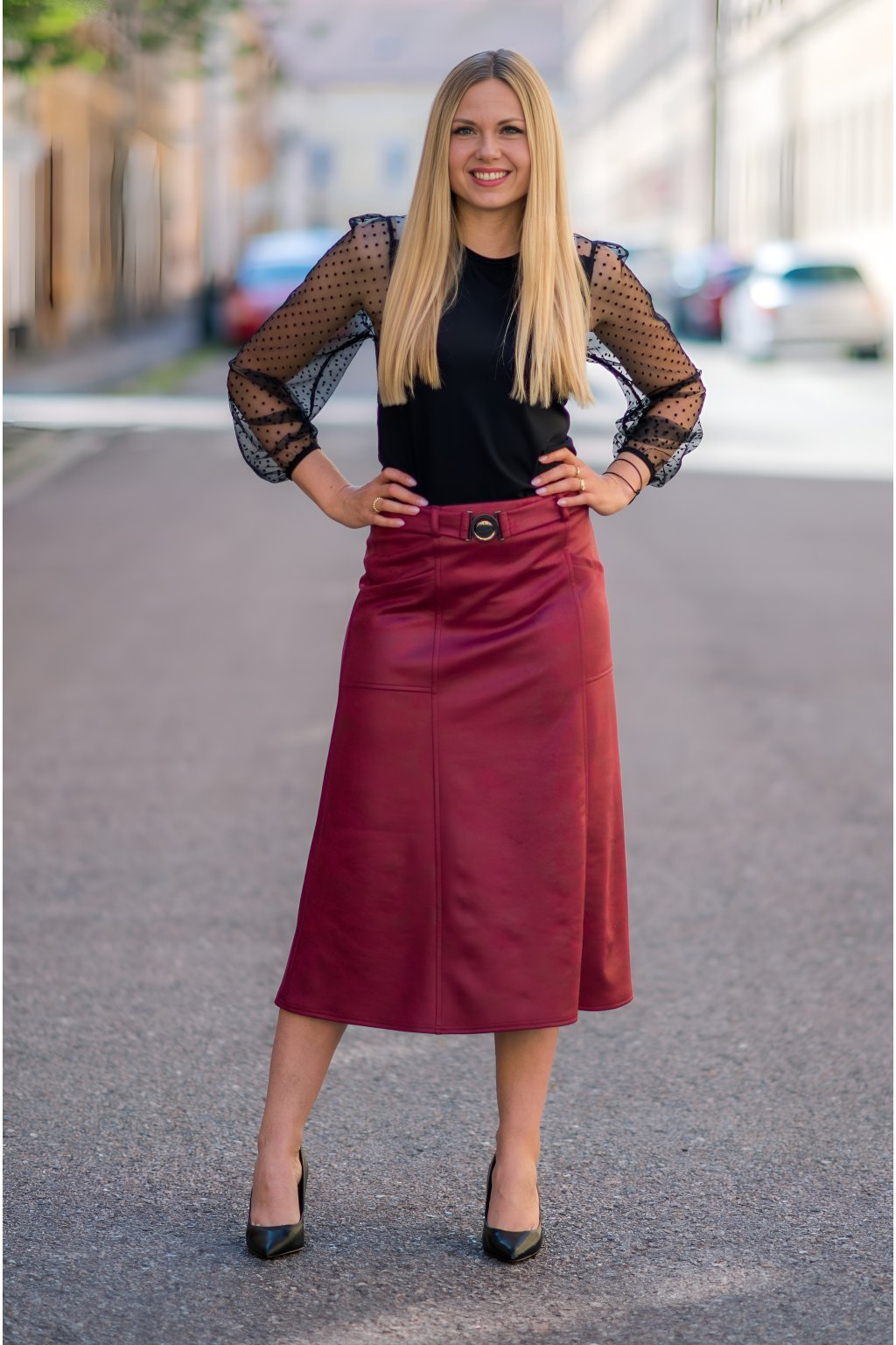Krokem k ženskosti a sebevědomí. Sukně Livia zaujme elegantní délkou, rafinovaným střihem a jemným semišovým vzhledem.