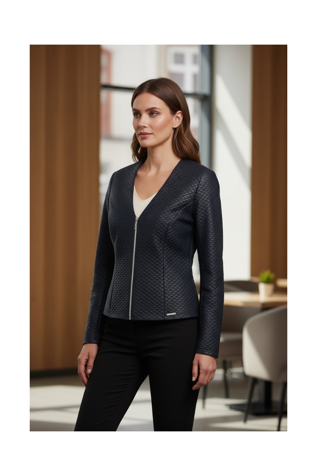 Elegantní kabátek pro moderní ženu, která ví, co jí sluší. Kabátek Angela je ideální volbou pro ty, které hledají stylový a přitom pohodlný kousek do práce i na volný čas. Jeho jemný lesk a plastický prošívaný vzor dodávají outfitu šmrnc bez zbytečných slov.