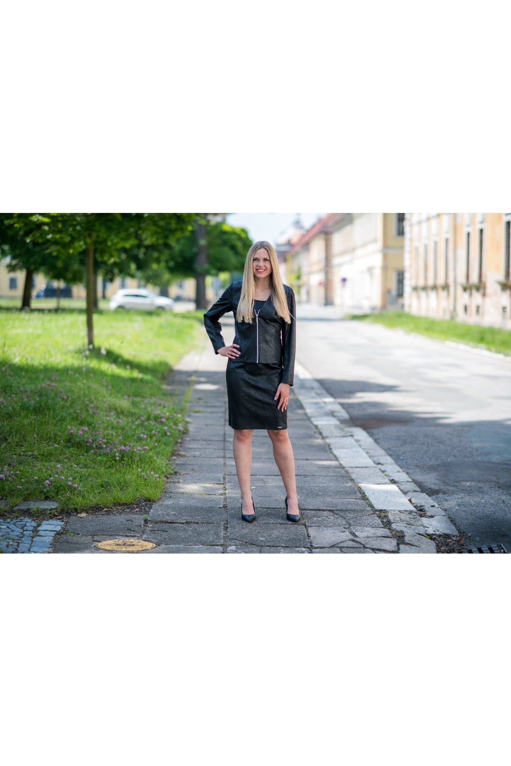 Elegantní výstřih do V, celopropínací zip ve stříbrném tónu a prošívaná struktura, která zaujme na první pohled. - Využití:
