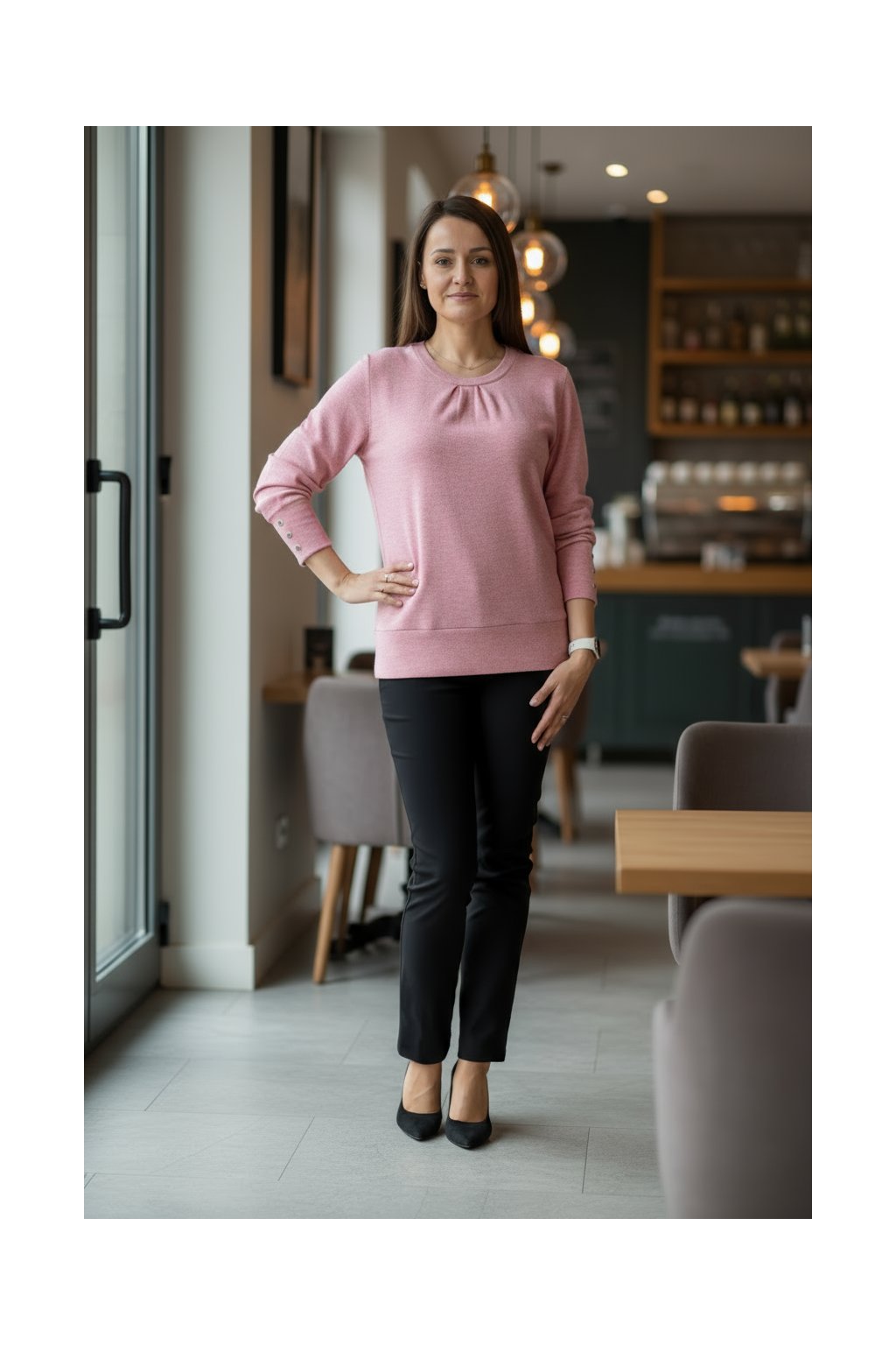 Nadčasová jednoduchost s jemným detailem. Svetr Daisy je univerzální kousek, který krásně doplní váš šatník. Má čistý design, který ozvláštňují drobné sklady u výstřihu a ozdobné knoflíky na rukávech – ideální volba pro ženy, které hledají pohodlí bez kompromisů ve stylu.