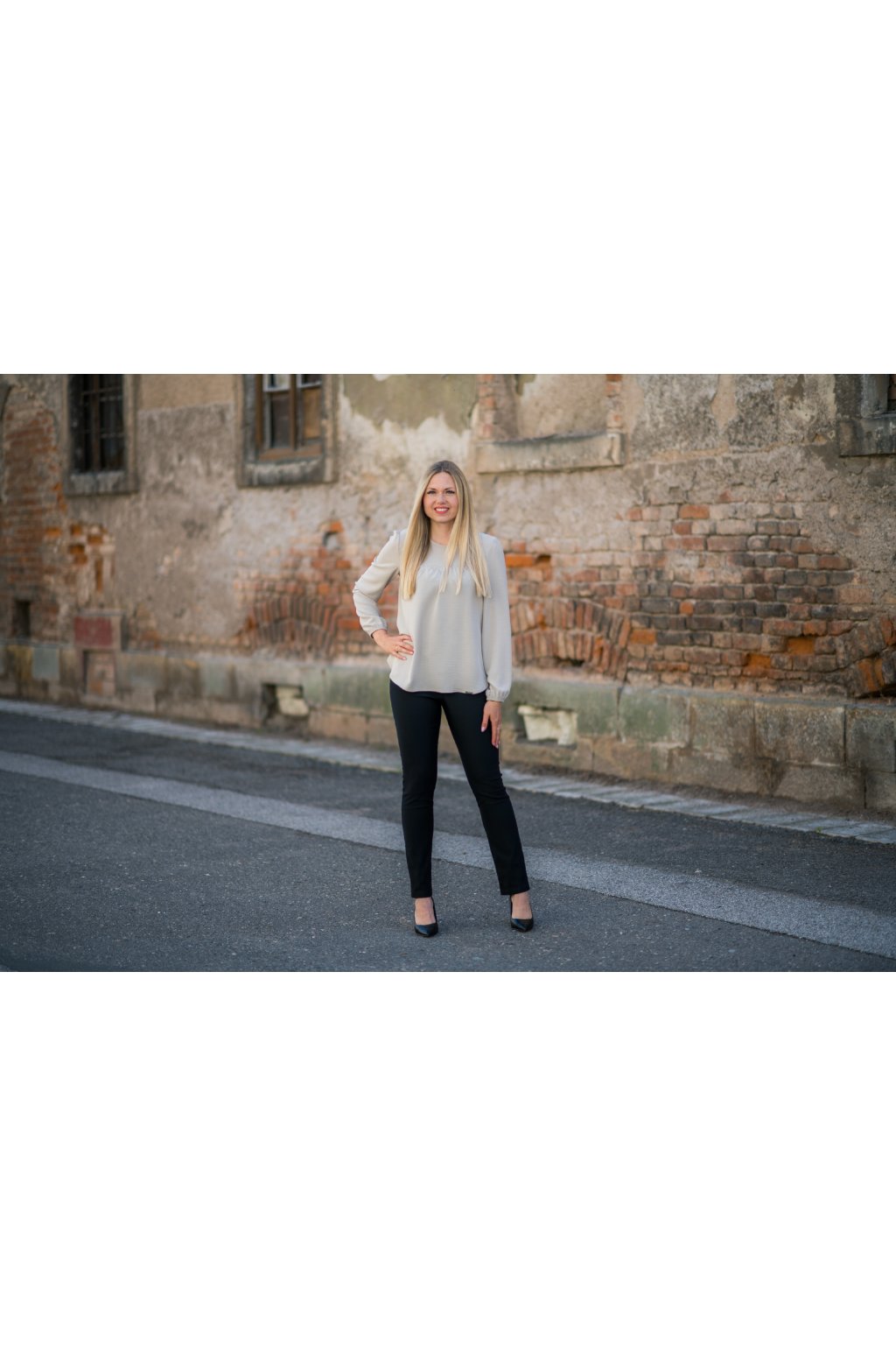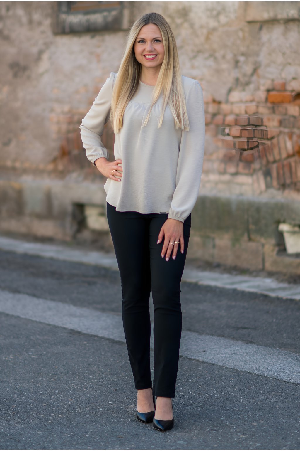 Jemné řasení na hrudi, které lichotí postavě, a dekorativní pás s drobnými kamínky, který dodává halenku ženský a elegantní nádech. Klasický kulatý výstřih a dlouhé rukávy dotvářejí čistý vzhled. - Využití: