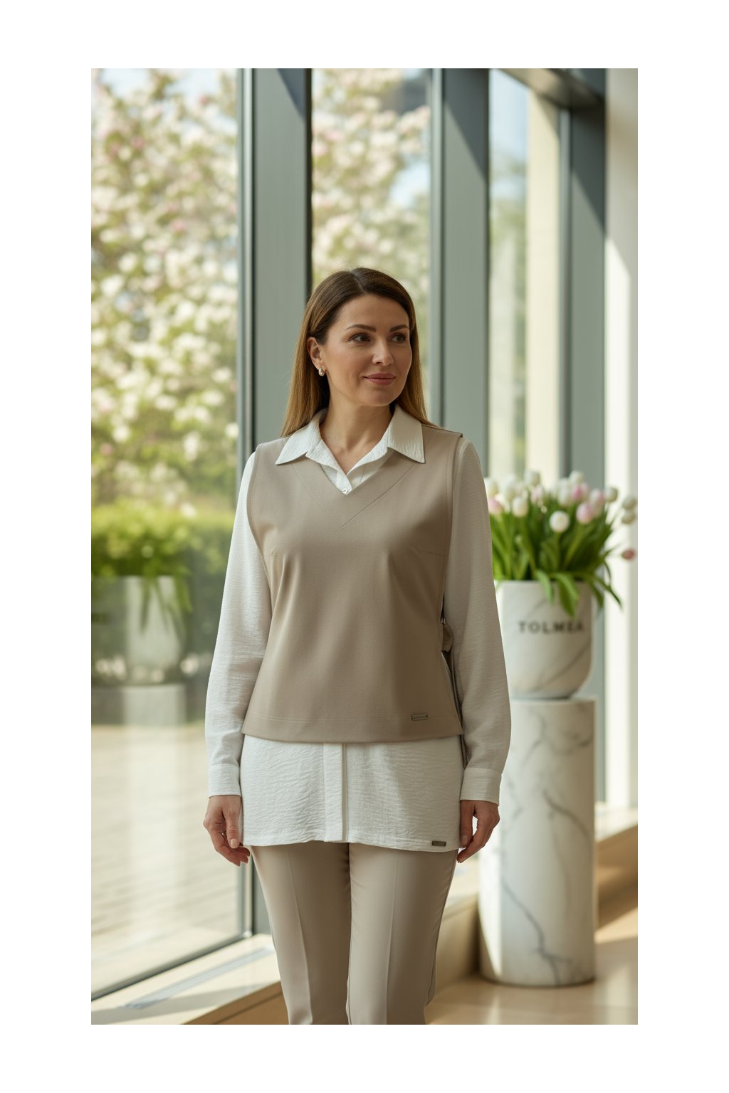 Vesta Paula je elegantní a nadčasový doplněk, který oživí každý outfit. Díky svému jednoduchému střihu a jemnému materiálu působí velmi žensky a sofistikovaně. Perfektně se hodí přes košili nebo halenku, ale i samostatně jako moderní prvek vrstveného outfitu.