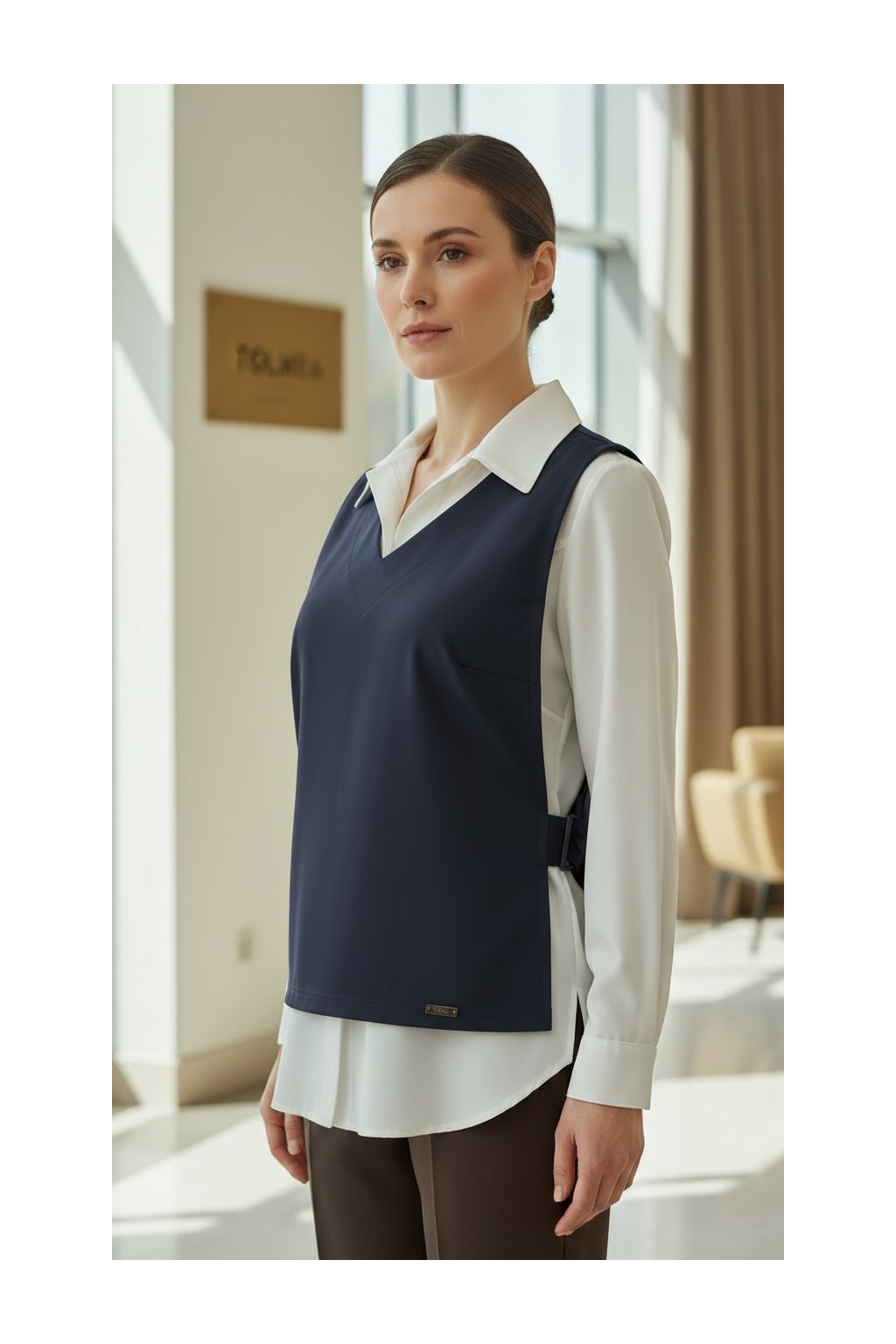 Vesta Paula je elegantní a nadčasový doplněk, který oživí každý outfit. Díky svému jednoduchému střihu a jemnému materiálu působí velmi žensky a sofistikovaně. Perfektně se hodí přes košili nebo halenku, ale i samostatně jako moderní prvek vrstveného outfitu.