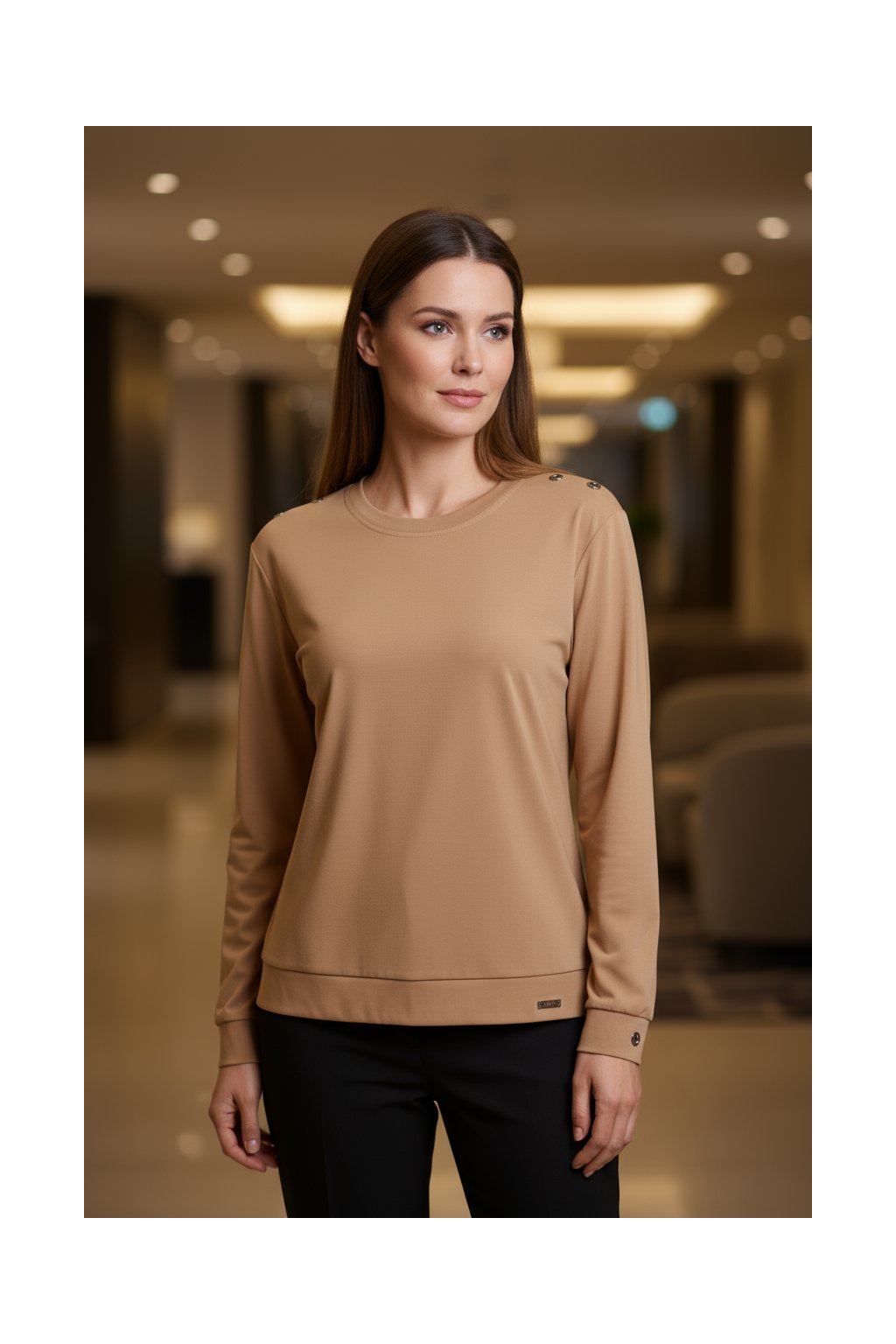 Minimalistická elegance s jemným leskem. Halenka Marga v sobě spojuje pohodlí a styl – díky decentnímu zdobení na ramenou působí nenuceně elegantně a využijete ji do práce i na volný čas.