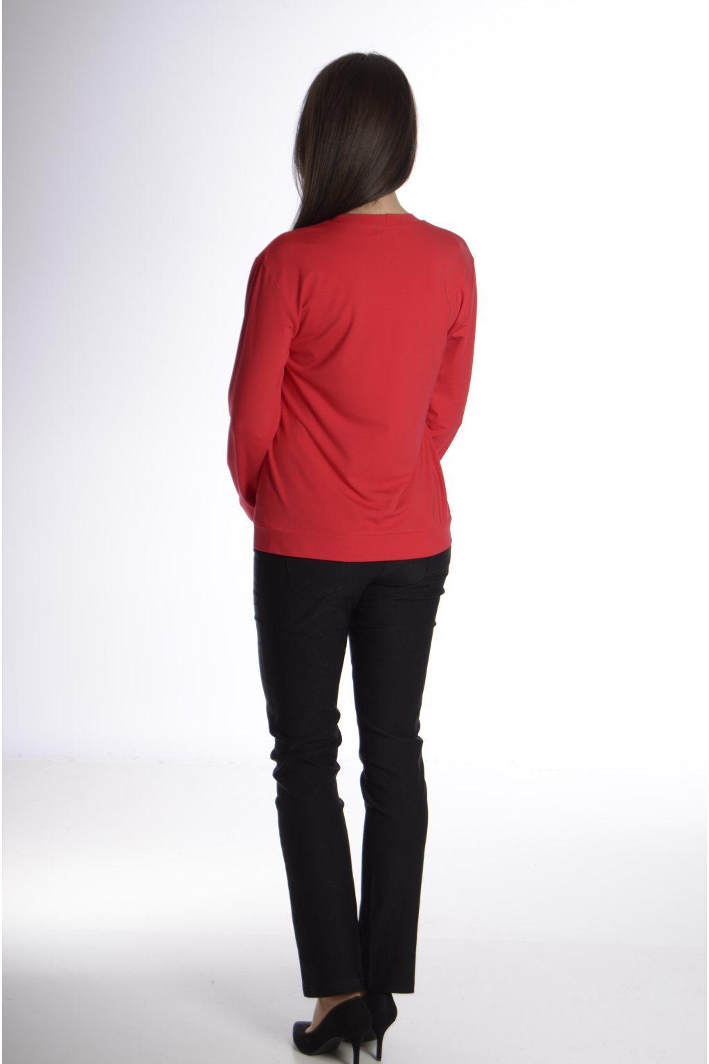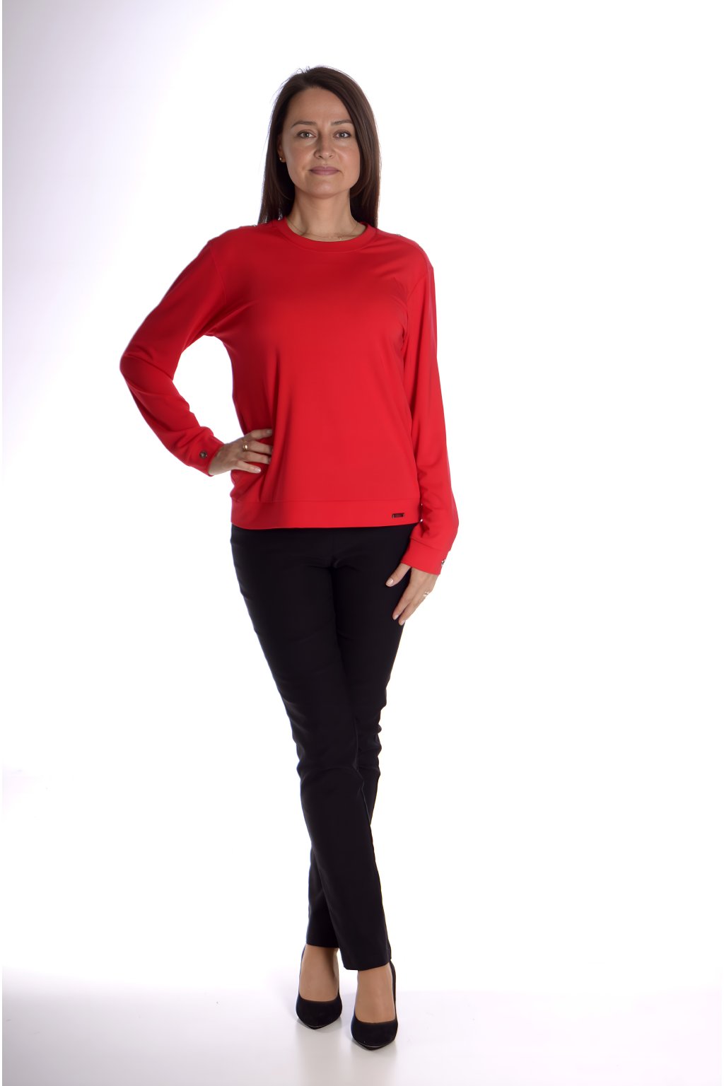 - Rovný, lehce volnější střih a kulatý výstřih – pohodlný a snadno kombinovatelný