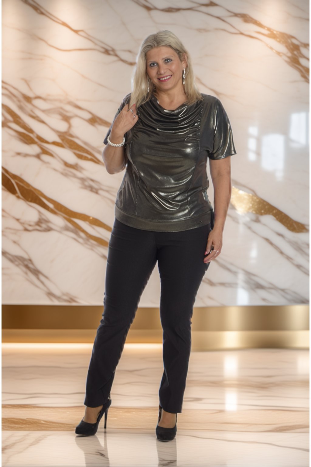 Výrazná halenka s efektním vodopádovým výstřihem a metalickým leskem. Halenka Made je tou pravou volbou, když chcete být středem pozornosti a zároveň se cítit pohodlně.