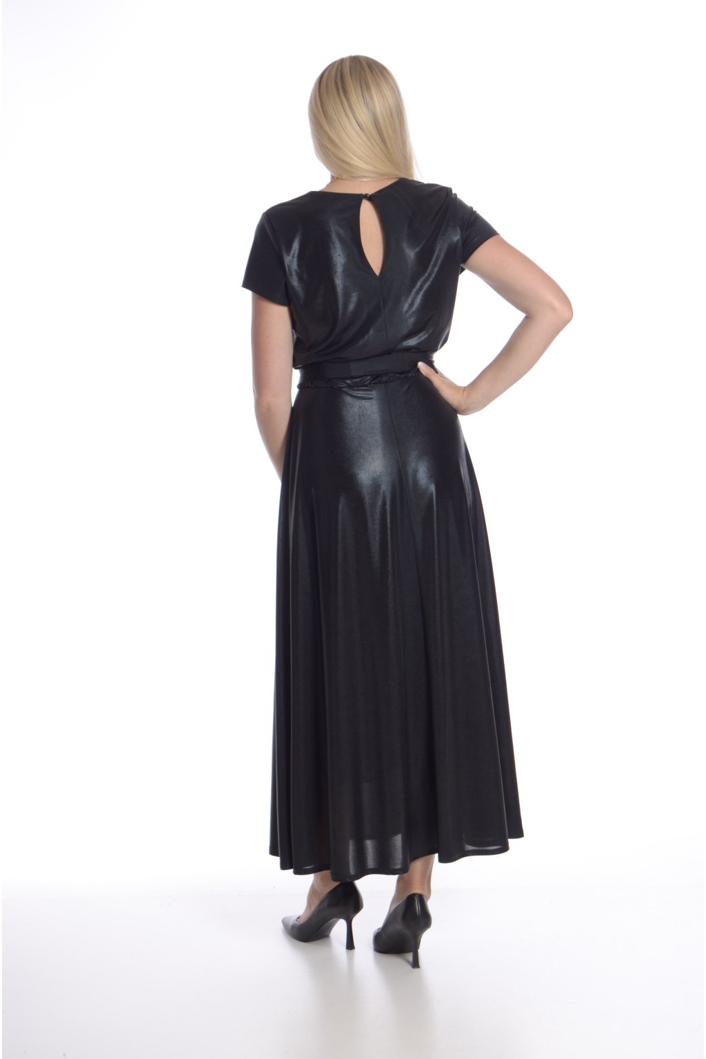 - Materiál: 94 % polyester, 6 % elastan – splývavý, pružný a efektně lesklý materiál, který krásně padne a přizpůsobí se pohybu