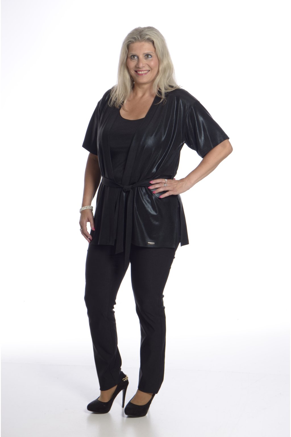 Kabátek Magali je stylový doplněk s metalickým leskem, který okamžitě pozvedne každý outfit. Lehký, splývavý materiál a volnější střih s páskem v pase zajistí eleganci i pohodlí.