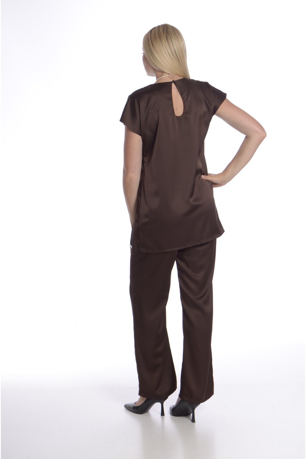- Elegantní vzhled – lehký lesk dodává kalhotám slavnostní nádech