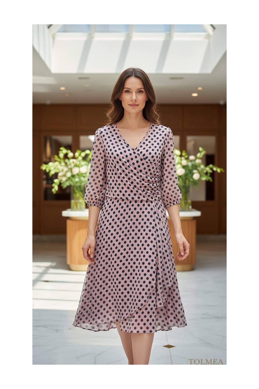 - Výstřih: zavinovací efekt do V pro elegantní vzhled.