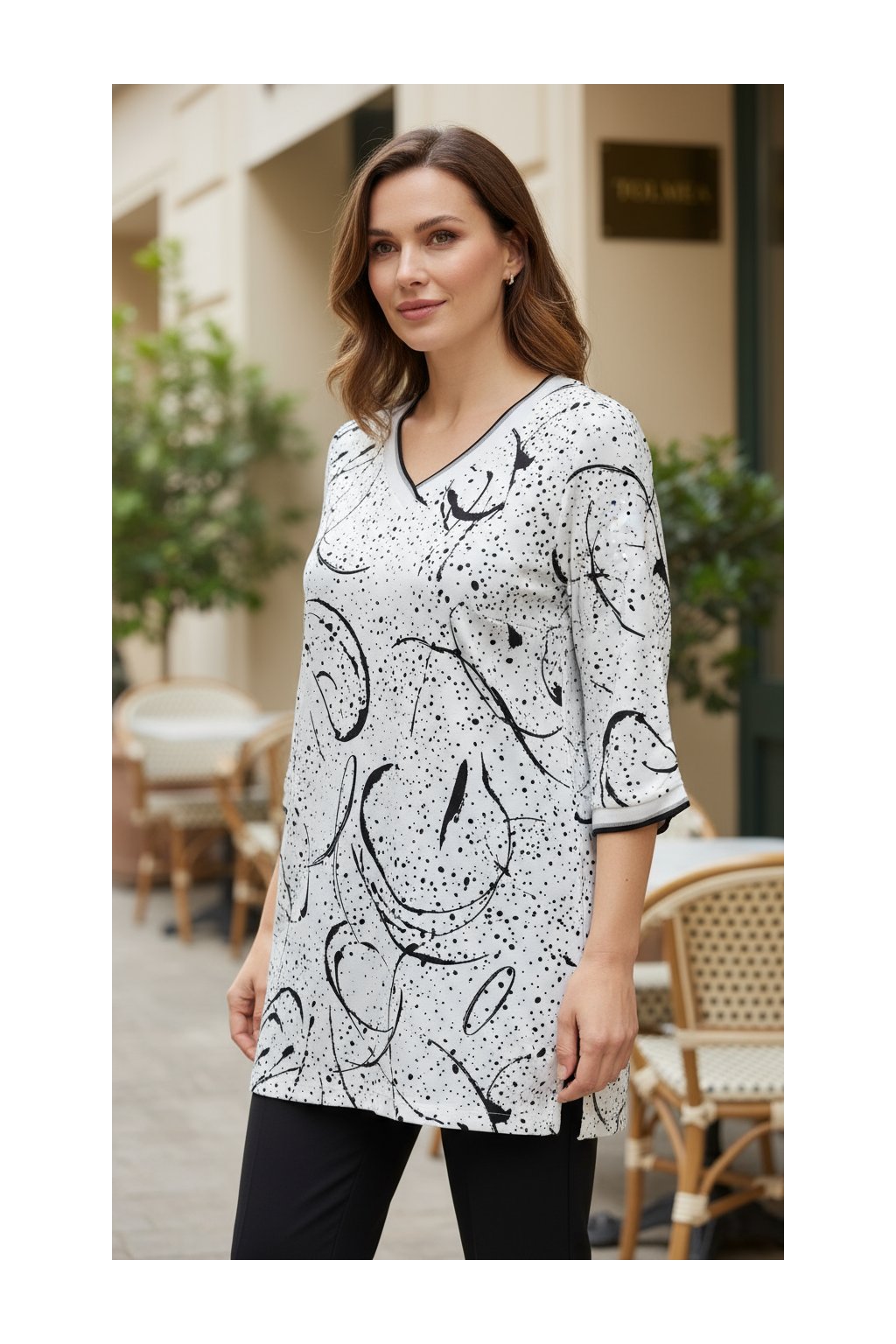 <p>Tunika Maika s moderním abstraktním potiskem nabízí pohodlí, volnější střih a elegantní vzhled pro každý den.</p>