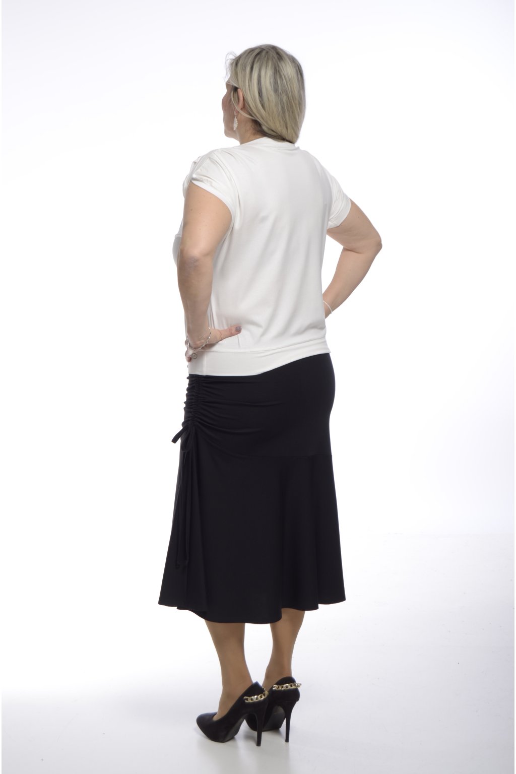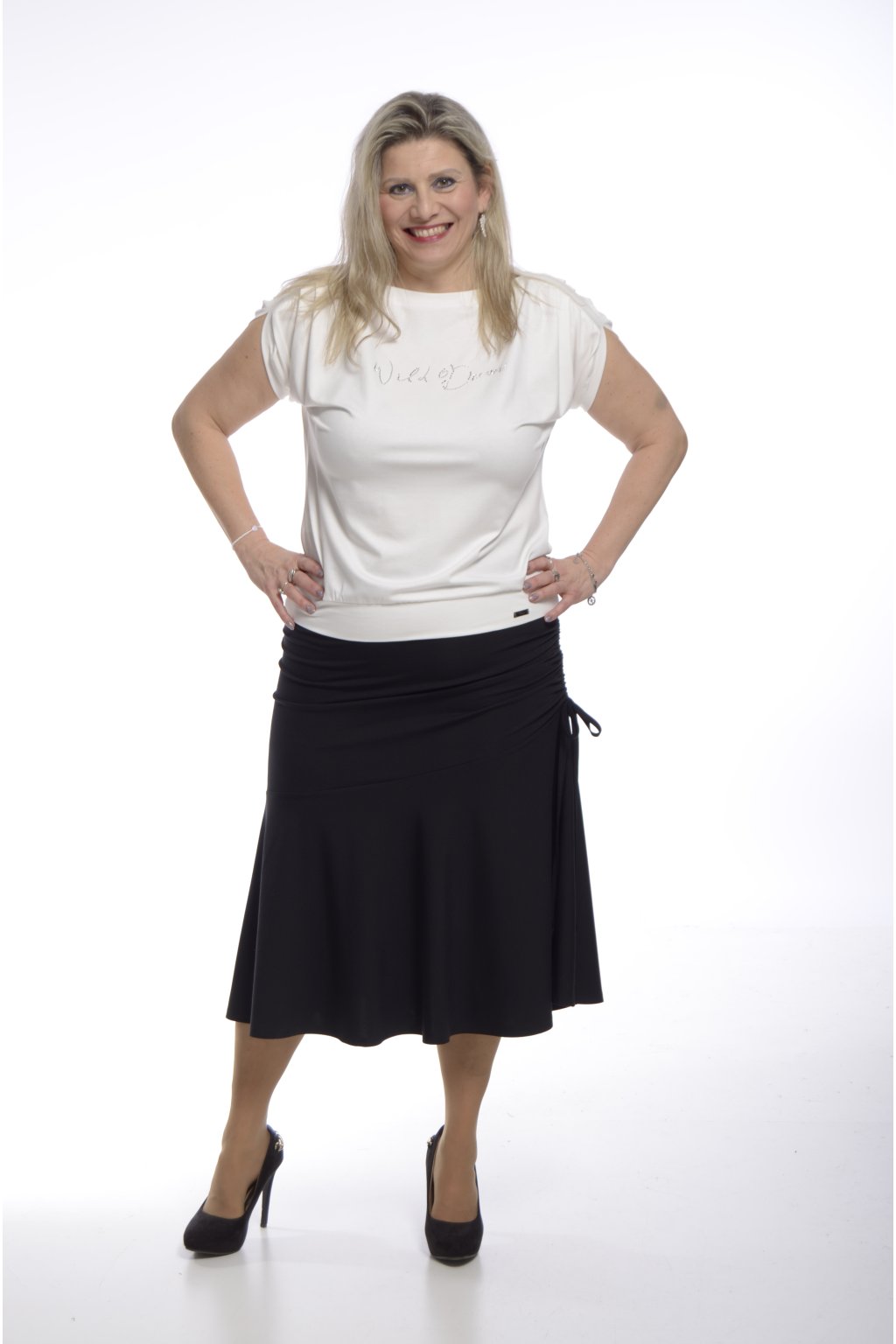 - Příjemný a splývavý materiál s vysokým podílem viskózy (94 %) a elastanu (6 %) zajišťuje pohodlí při nošení i krásný tvar