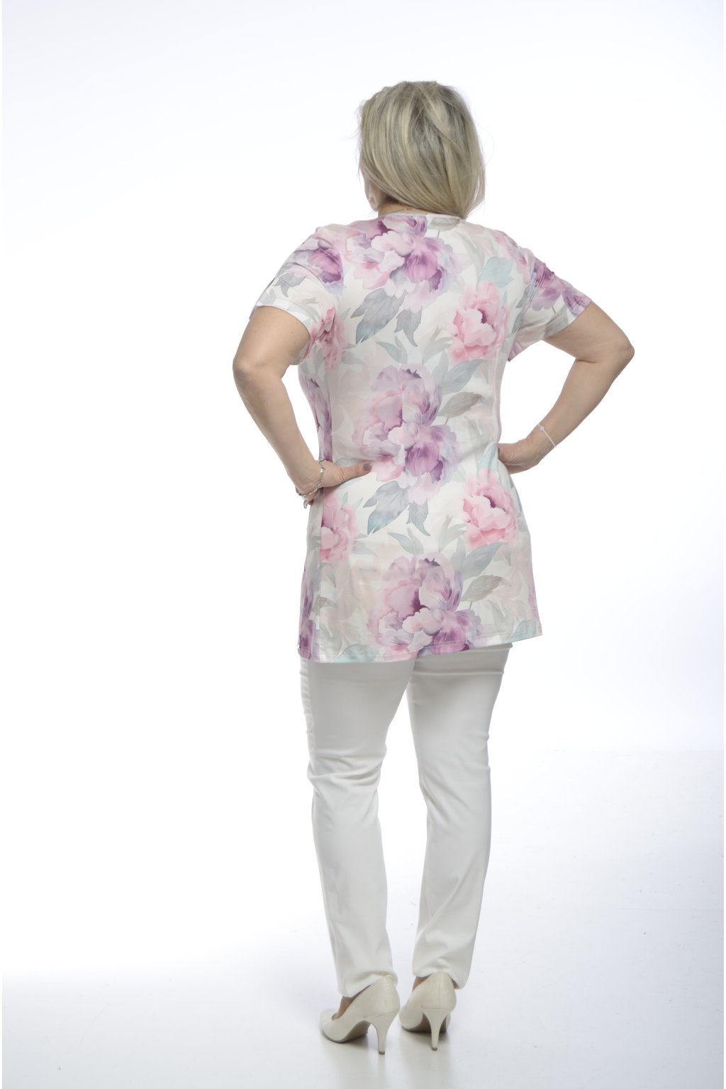 Dámská tunika s jemným květinovým vzorem a lichotivým střihem, která kombinuje eleganci, pohodlí a ženský půvab v jednom modelu.