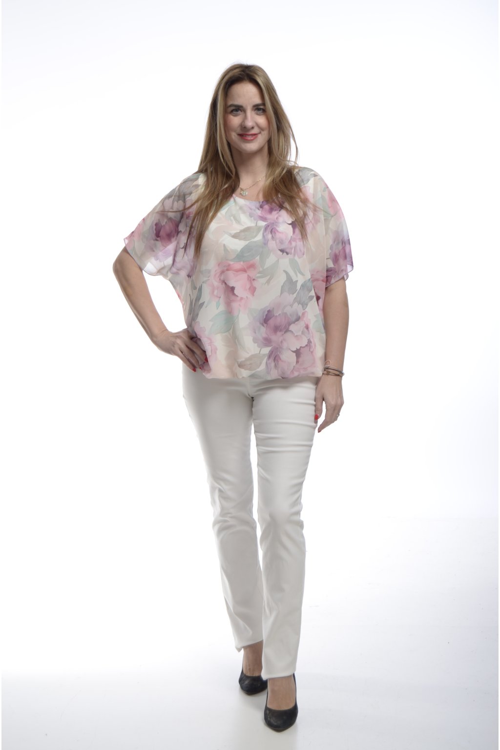 Elegantní dvouvrstvá halenka s jemným šifonem a pohodlným tílkem. Lehká, vzdušná a zároveň neprůhledná – ideální na letní dny plné ženskosti a stylu.