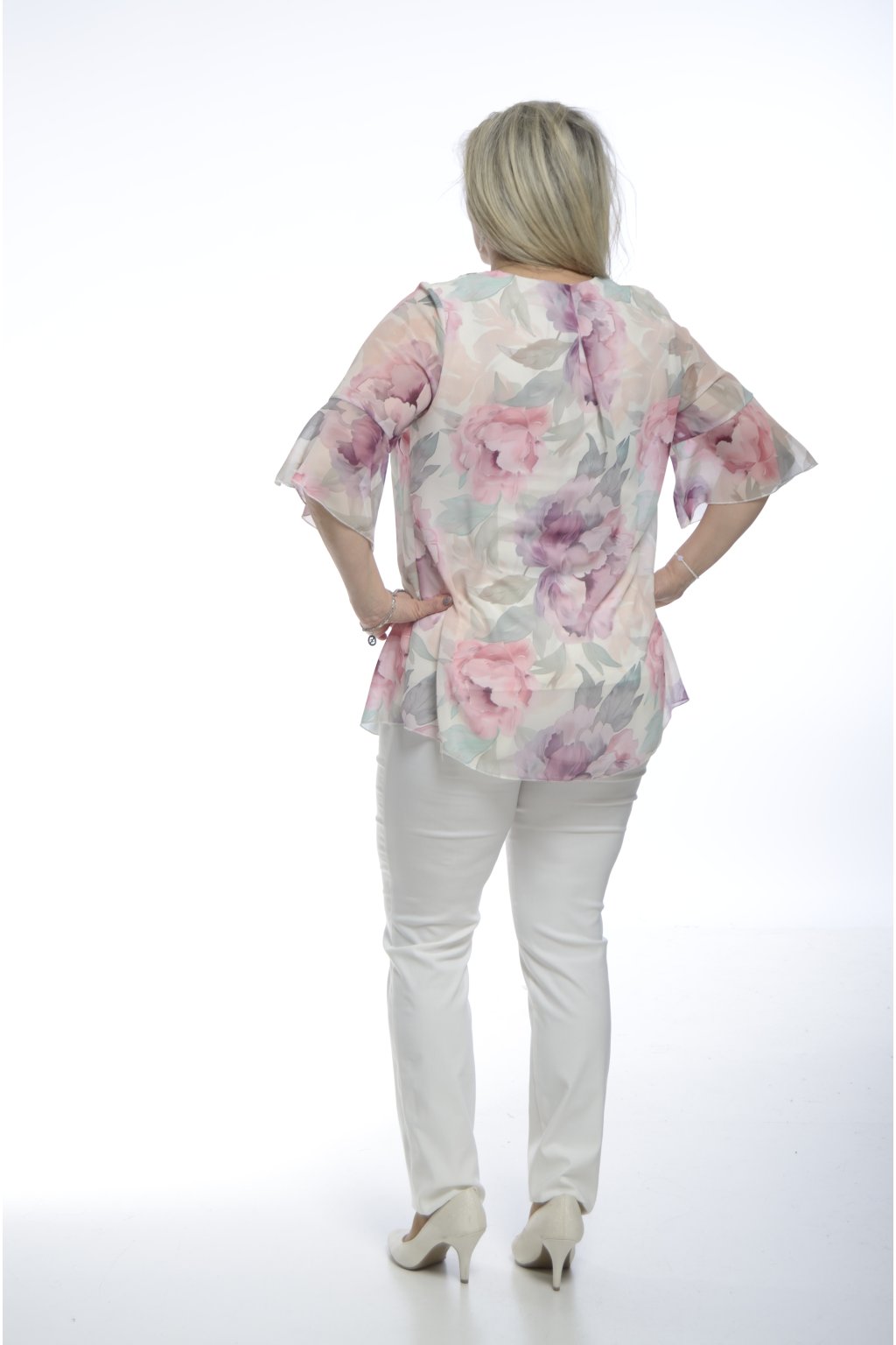 Elegantní tunika s jemně průsvitnými rukávy a květinovým vzorem, která okouzlí svým ženským střihem a vzdušným materiálem. Ideální pro slavnostnější chvíle i stylové denní nošení.