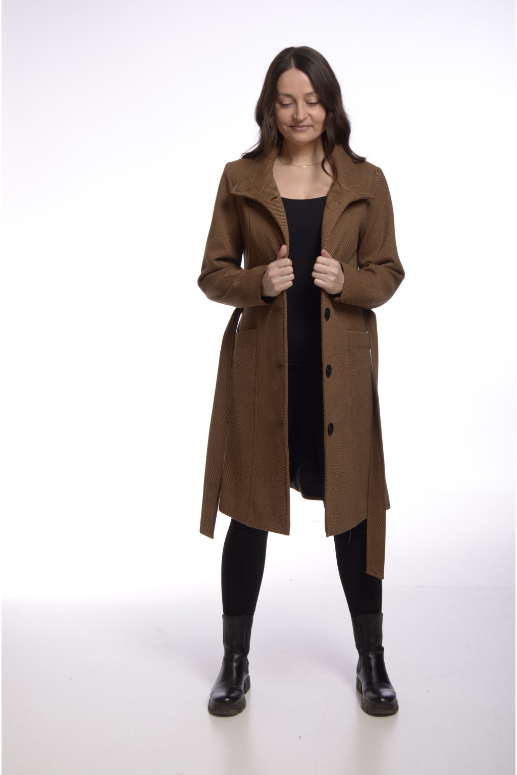 Kabát je vyroben z odolného a nenáročného materiálu, který se dobře udržuje, drží tvar a zároveň je příjemný na dotek. Ideální pro ženy, které hledají styl bez kompromisů v péči o oděv. - Designové prvky: