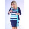 Šaty přiléhavého střihu s rukávy třičtvrteční délky. Jsou zajímavě členěny s využitím prouhy a materiálu uni, který je vhodně barevně sladěn.