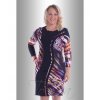 Šaty přiléhavého střihu jsou zhotoveny z pevnějšího úpletového materiálu. V kombinaci dvou vzorů a střihového řešení předního dílu vytváří zeštíhlující efekt. Na zadním díle je zhotoven krytý rozparek.