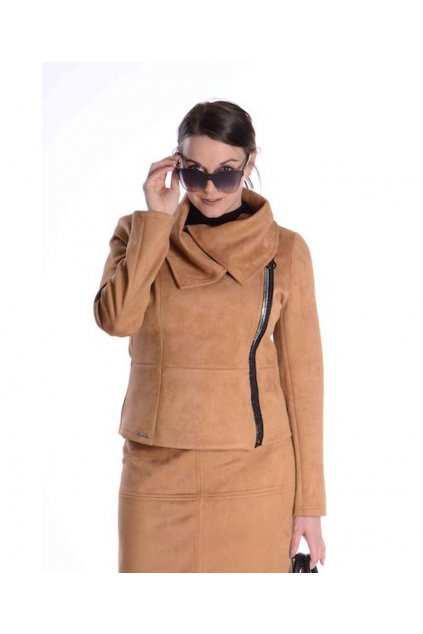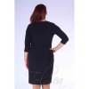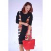 Šaty přiléhavého střihu s vypracovaným rozparkem na zadním dílu. Přední díl tvoří výrazný kantový vzor, který asymetricky člení vsazený díl černé barvy. Výstřih je lemovaný, s našitou ozdobnou sponkou. Rukávy jsou třičtvrteční délky.
